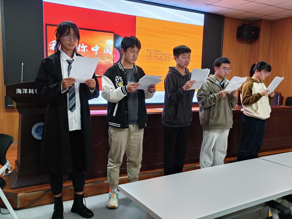 11月27日晚7点,海洋科学与水产学院爱国主题朗诵比赛初赛在海洋南楼203顺利举行。本次活动由团委实践部李沛橙和吴亚娟主持,由院团委副书记李昌文和孙雨琰、院大成主任孔博文、院大成副主任胡骏熙担任评委。