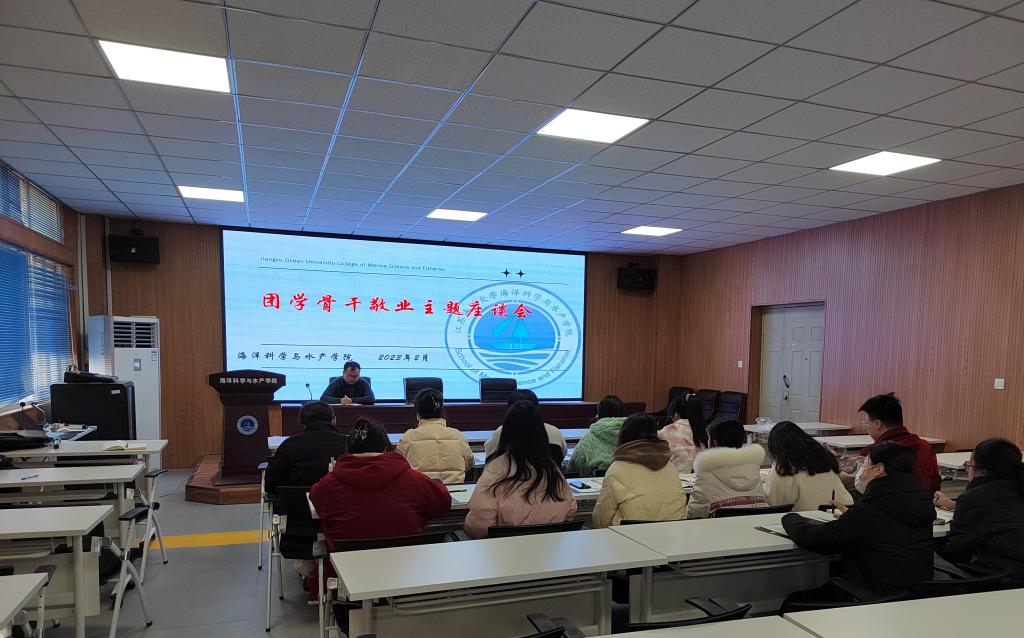 为推动学院团学工作高质量发展,倾听学生心声,激励团学干部增强历史责任感和使命感,2月27日下午,海洋科学与水产学院于海洋南楼203召开团学骨干敬业主题座谈会。学院党委副书记朱小明,团委书记唐振新及全体团学骨干参与座谈。