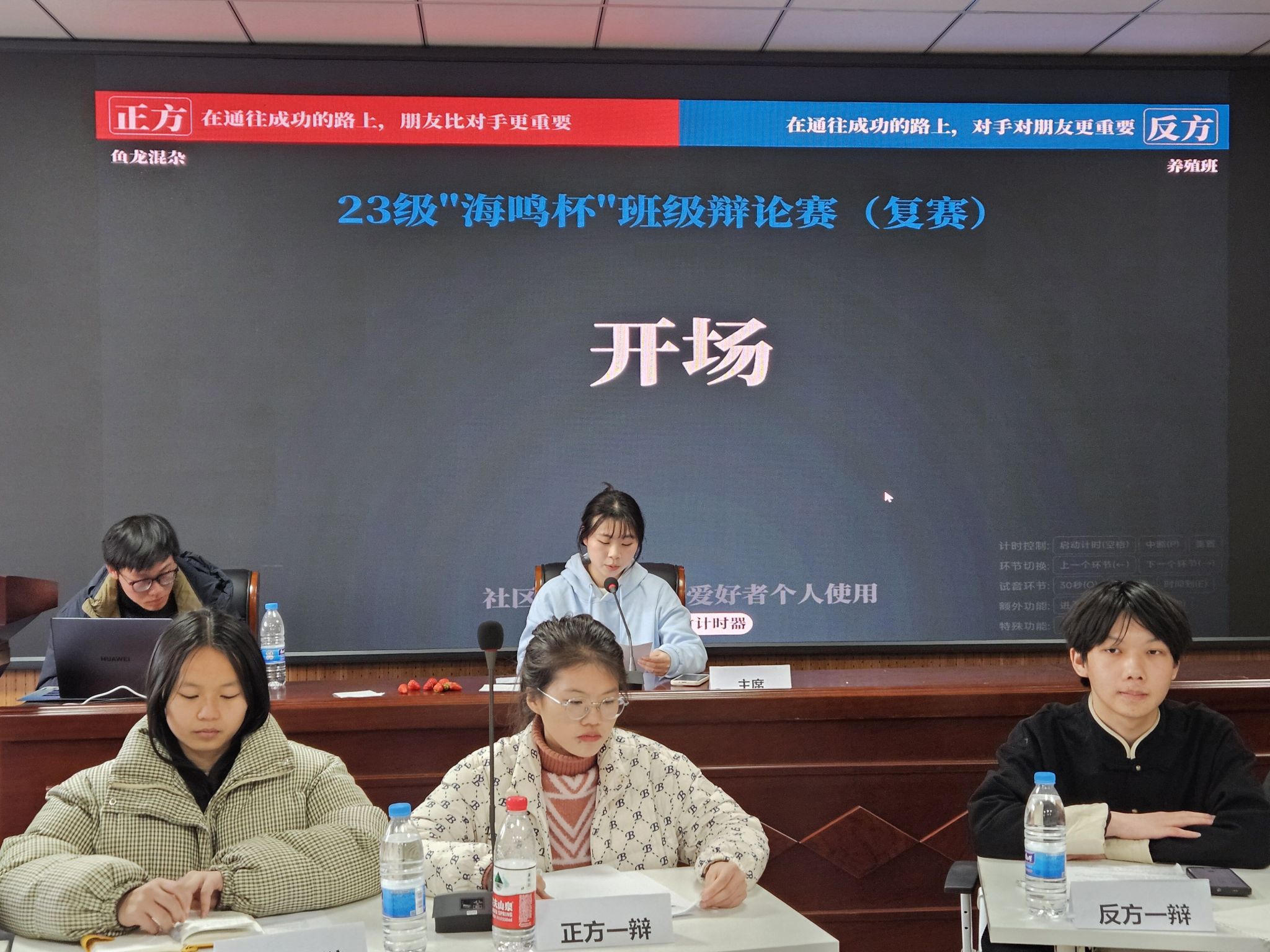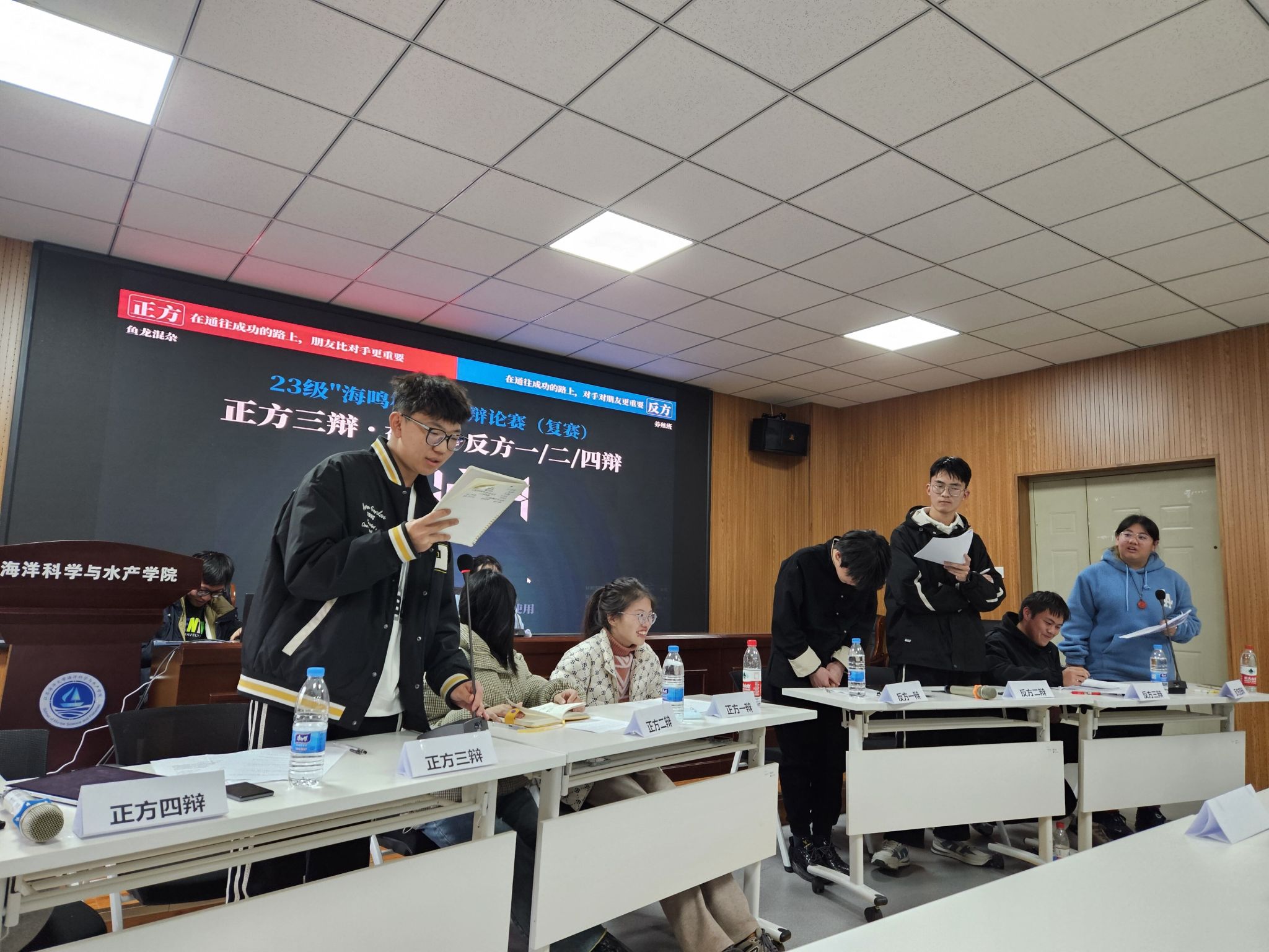3月24日下午,23级“海鸣杯”新生辩论赛复赛在海洋南楼203成功举办。辩论赛由海洋科学与水产学院学生会举办,活动旨在提高选手们的思辨能力、应变能力和团队协作能力,促进班级之间的交流。经过激烈角逐,最终23级养殖班和海科1231班成功晋级。