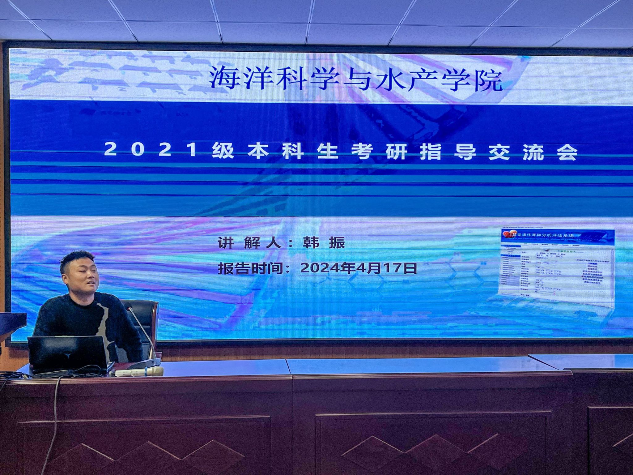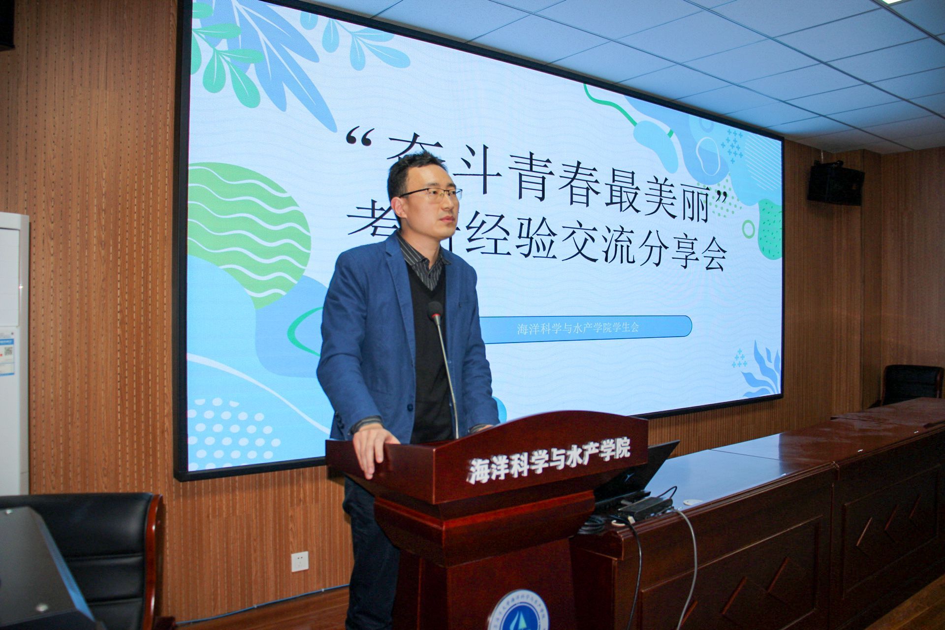 4月17日晚,海洋科学与水产学院学生会在海洋南楼203举办了“奋斗的青春最美丽”——考研经验交流分享会,本次交流会邀请了学院学工办副主任韩振及在今年考研中表现优秀的六位学子:孙雨琰、王浩同、张燕燕、吴倩、黄兴耀、倪嘉璇为大家做经验分享和考研指导,他们齐聚一堂,各有侧重的分享了自己在考研方面独到的见解和心得,学院团委书记唐振新出席活动并做点评讲话。