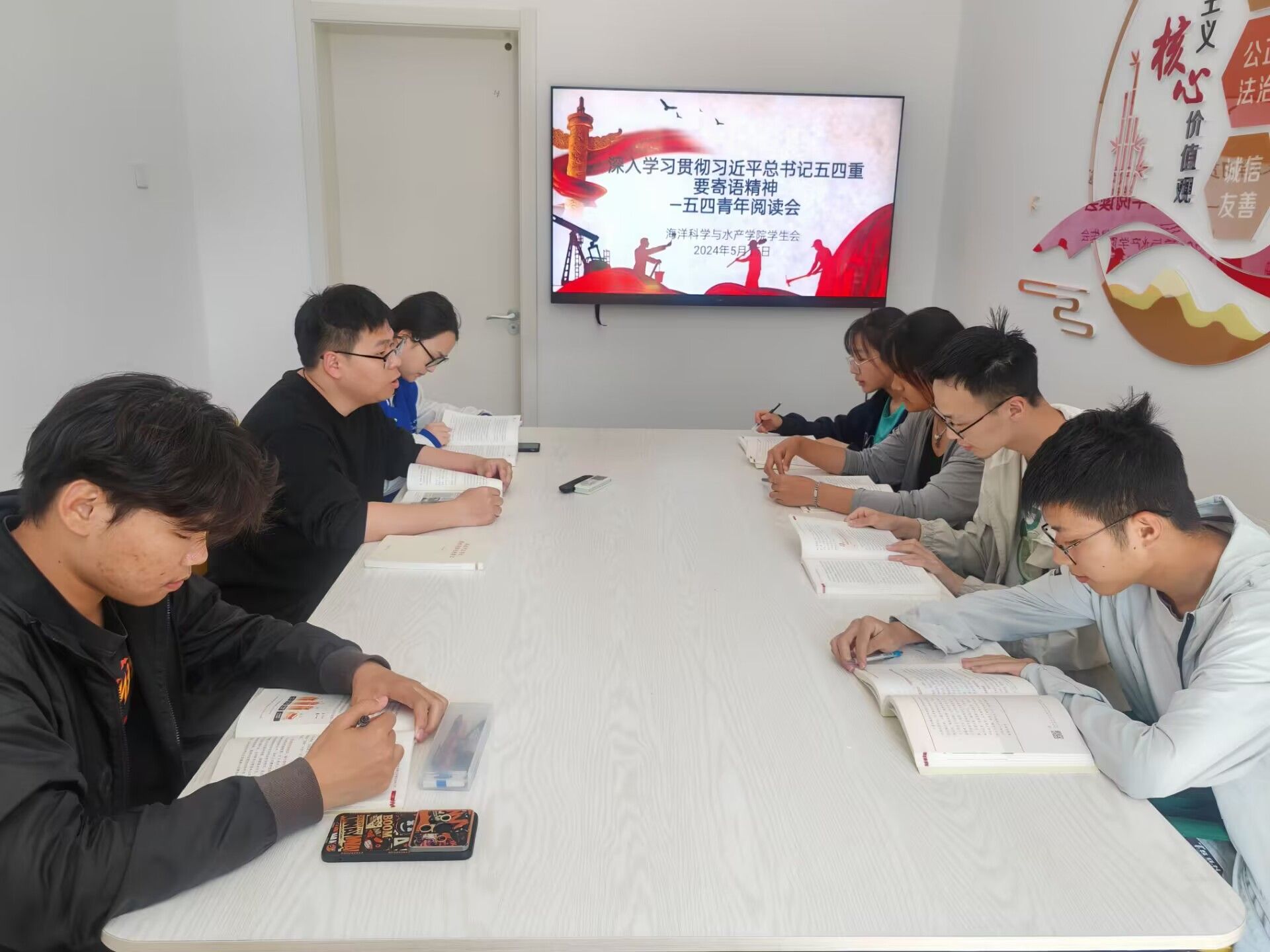 为深化大学生对五四精神的理解,传承和弘扬五四精神,激励广大学子在新时代勇担使命,奋发向前,5月15日下午,海洋科学与水产学院学生会于学生社区工作站B1-116成功举办五四精神学习阅读会,学院学生会骨干成员参加学习。