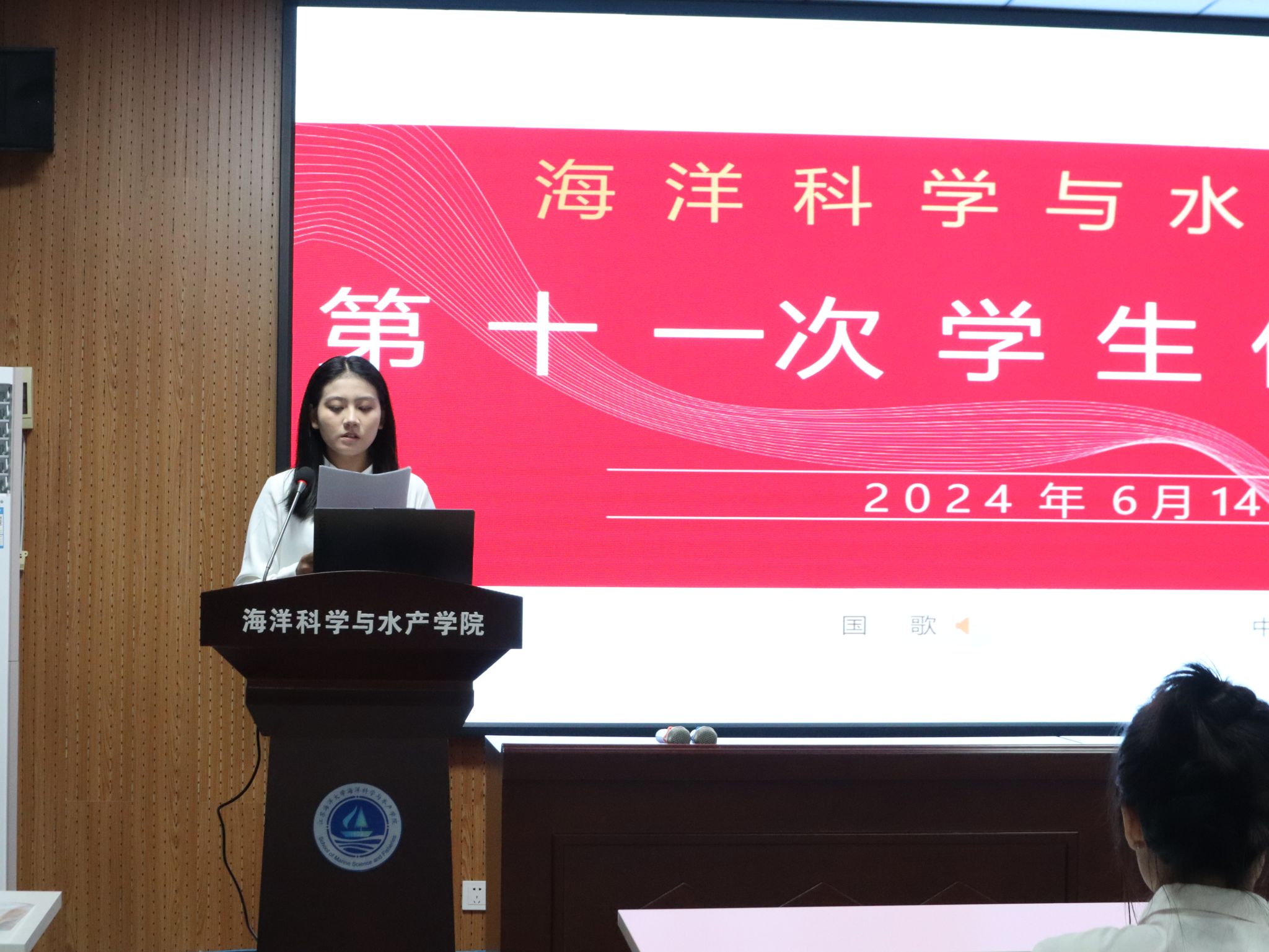 6月5日晚,海洋科学与水产学院第十一次学生代表大会在海洋南楼203室成功召开。学院党委副书记朱小明、学院团委书记唐振新、校学生会主席孔令洲、电子工程学院学生会主席王振宇、校研究生会干事王硕和全体学生代表出席本次会议。会议由唐振新主持。