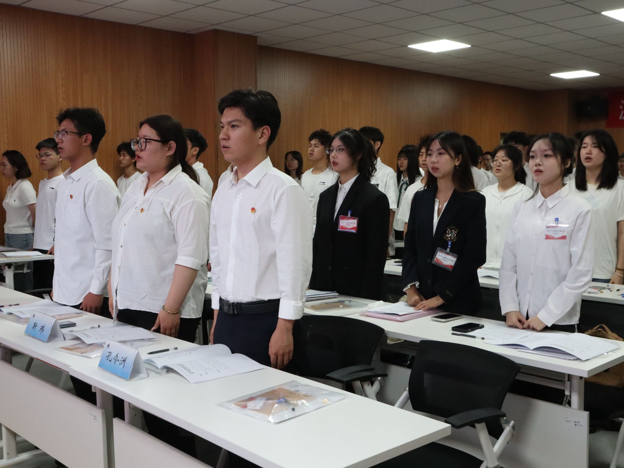 学院党委副书记朱小明致辞,他对过去一年学生会的各项工作和所取得的成绩给予了肯定,赞扬了过去一年学生会深入学生群体,切实服务同学的工作作风。同时,他号召学生会成员挺膺担当、积极主动履行职责,在做好各项工作的基础上,提升服务意识,创新工作方式,凝心聚力,建设一支政治觉悟高、学习态度优、品德优良、乐于奉献、广受同学认可的学生会组织队伍。