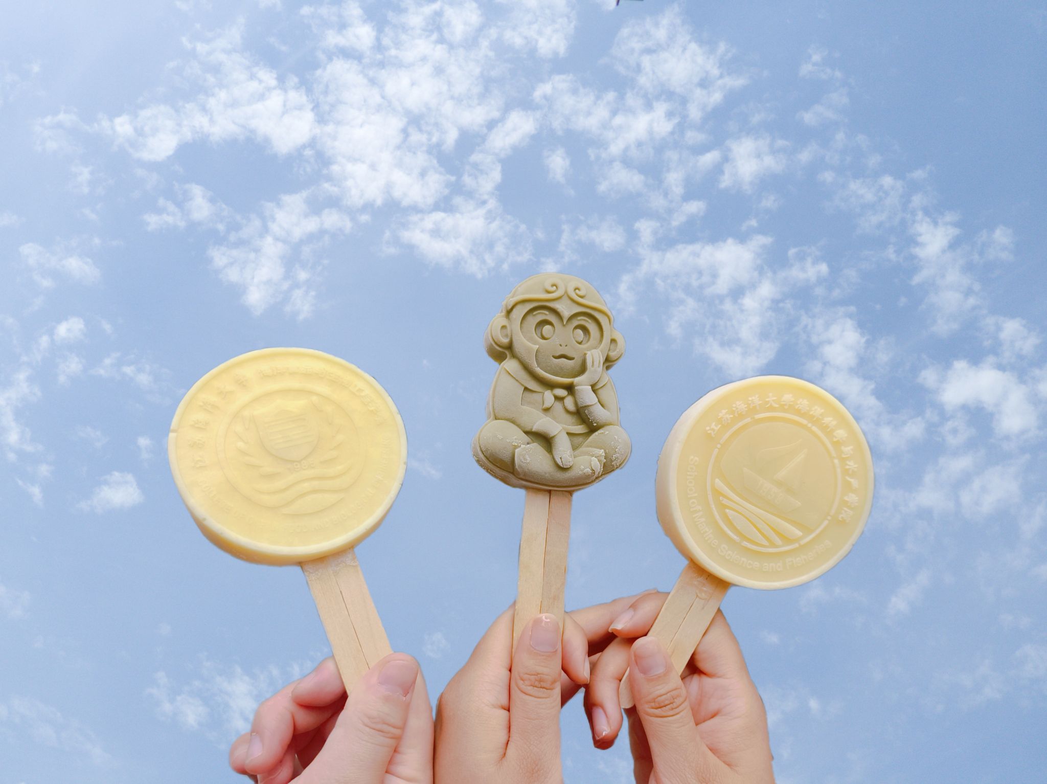 活动伊始,工作人员穿好实验服,戴好口罩,做好清洁后进入实验室,以保证冰激凌制作过程中的干净卫生,接着对制作仪器进行认真消毒清洁。随后,实验室老师向同学们讲授相关仪器的使用方法、冰淇淋的制作步骤,以及处理与配置混合原料时的注意事项,为后续的顺利制作打好坚实基础。接着,活动人员按步骤分别将原料混合,倒入仪器搅拌。搅拌均匀的半成品放在指定模具中静置封装。封装完成后放入冰箱冷冻。整个制作过程有条不紊,并严格依照卫生标准要求。最终一个个色味俱佳、造型可爱的冰淇淋制作完成。其中有特色海洋生物造型、有西游文化代表孙悟空造型等。