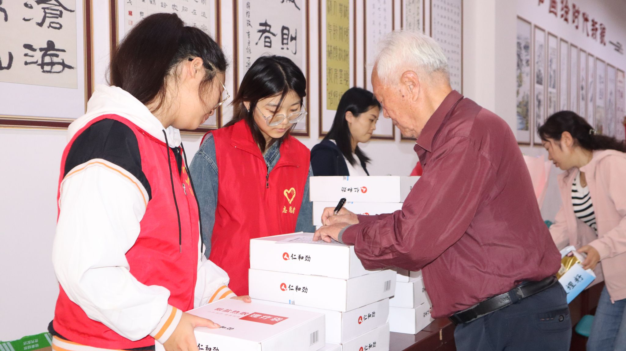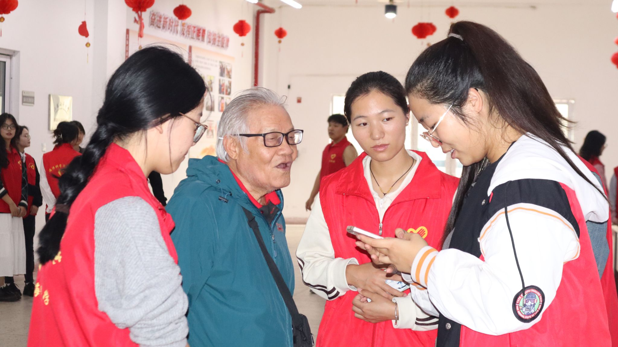 随后活动中,学生志愿者们在慰问品发放、掼蛋和桌上冰球比赛中做好得力助手,让退休老教师们尽享活动乐趣。活动过程中,志愿者认真倾听老教师讲述过往故事与人生经验,崇敬之情溢于言表。老教师的谆谆教导如智慧灯塔,照亮志愿者前行之路。志愿者也主动分享了学习生活的情况,展现年轻一代青春活力。