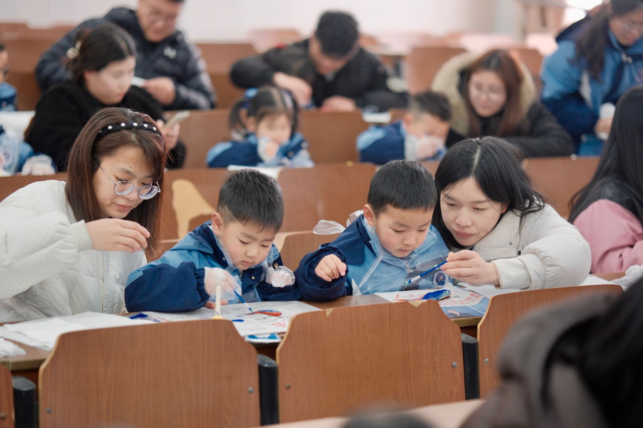 在文通楼内,孩子们体验了鱼拓活动。“鱼拓”属于传拓技艺的一种,是将鱼的形态拓印在宣纸上的艺术,起源于钓鱼人将捕获的鱼拓印下来留作纪念或参加比赛。老师和志愿者讲解了拓印的原理、方式以及步骤,家长握着孩子们的小手轻压宣纸,鳞片纹路在孩子们的惊呼中逐渐显现。孩子们在创作过程中深刻感受到了传统文化的魅力,一幅幅栩栩如生的鱼拓作品纷纷呈现在大家面前。这不仅是非遗技艺的传承,更是一场将“蓝色基因”融入新生代血脉的仪式。