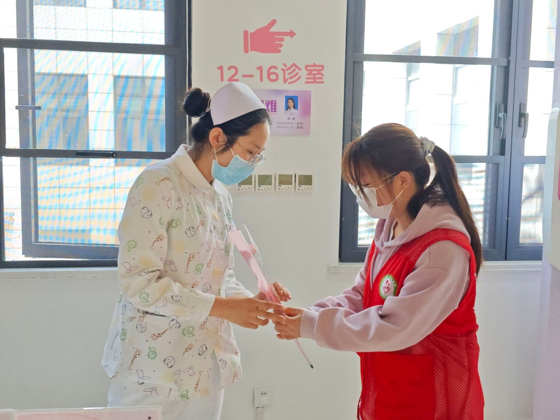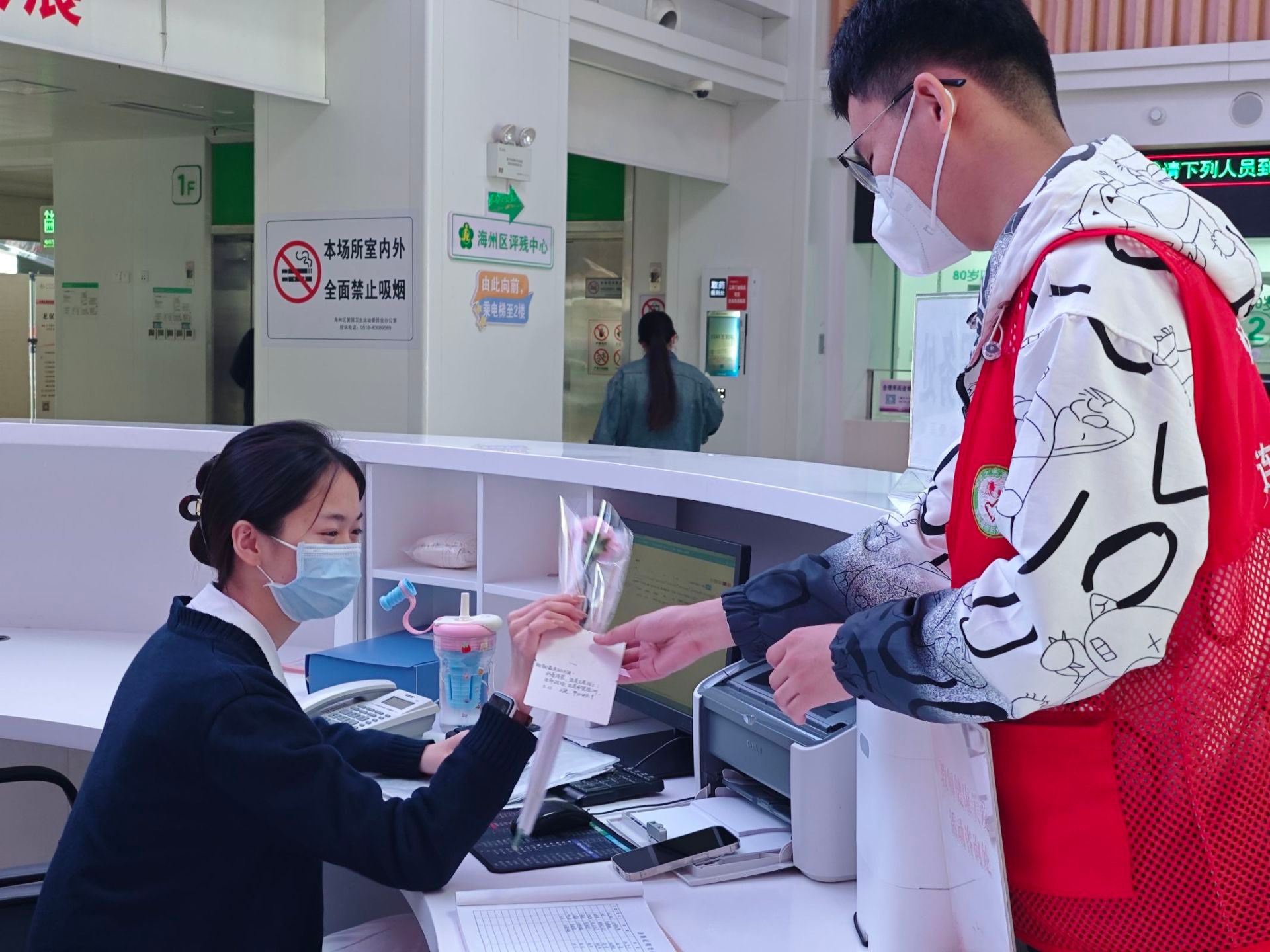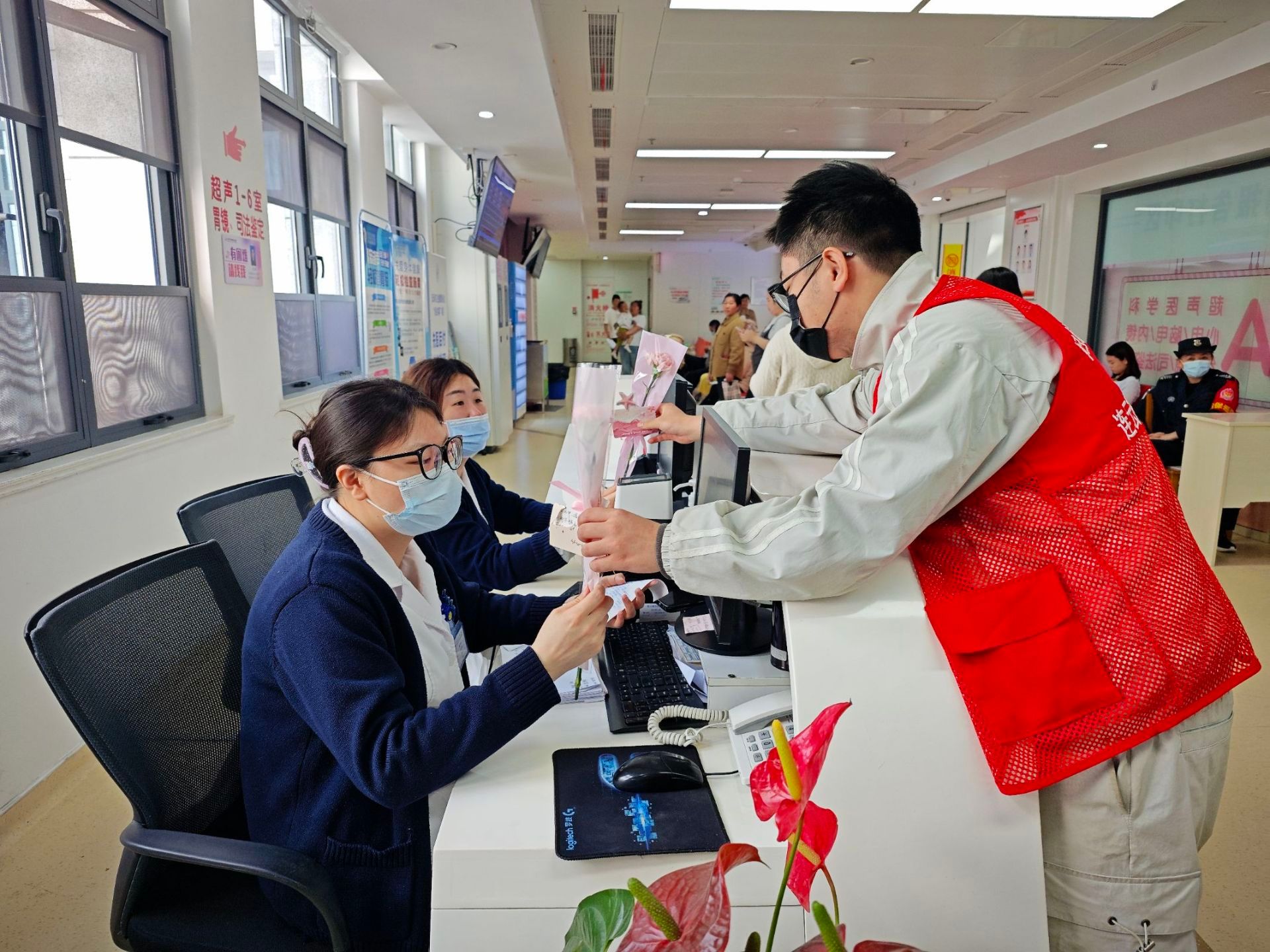 活动伊始,志愿者们前往各个科室开展导医导诊工作。在导诊台,他们耐心地为患者指引科室、答疑解惑;在候诊区,协助维持秩序,安抚患者焦急情绪;主动帮助老年患者完成挂号、缴费等流程。志愿者们以真诚的微笑和贴心的服务,为病患及家属带来便利与温暖。