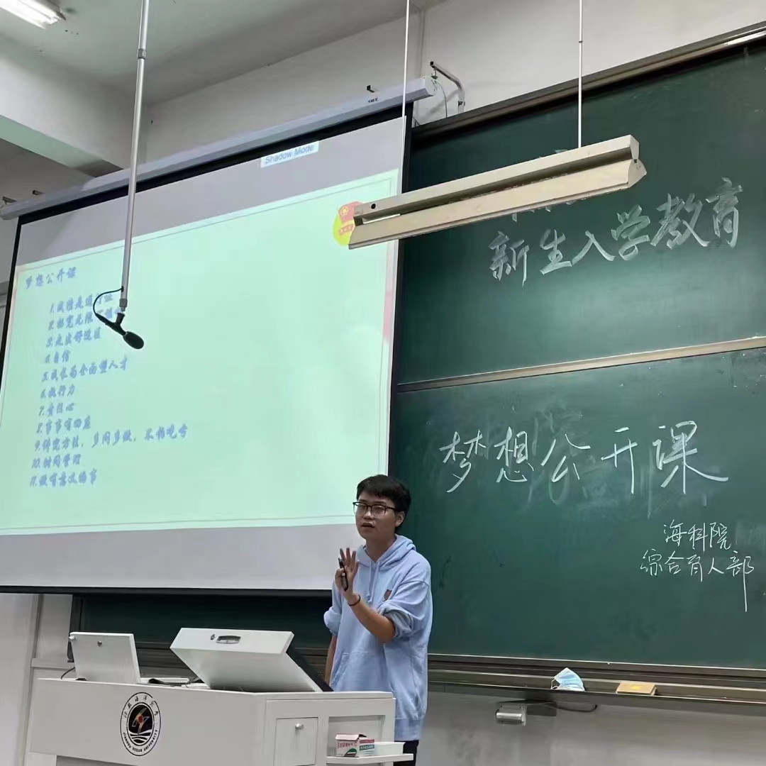“我今天要讲的团课的题目是《青春向党,奋斗强国》……”2022年5月5日,此时刘潘江正在为新团员带来入团第一课。大学期间,他不忘初心,牢记使命,带领广大团员认真学习习近平新时代中国特色社会主义思想,党的二十大精神,不断提高思想站位,入选我校“信仰公开课青年讲师团”,受邀在我校新生团支书培训,信仰公开课等重要场合进行宣讲,目前已在校内宣讲10余场,覆盖2000余人。2023年获评江苏省“优秀团员”、校青马“优秀学员”、多次获评江苏海洋大学“优秀团员干部”“三好学生”等荣誉称号。