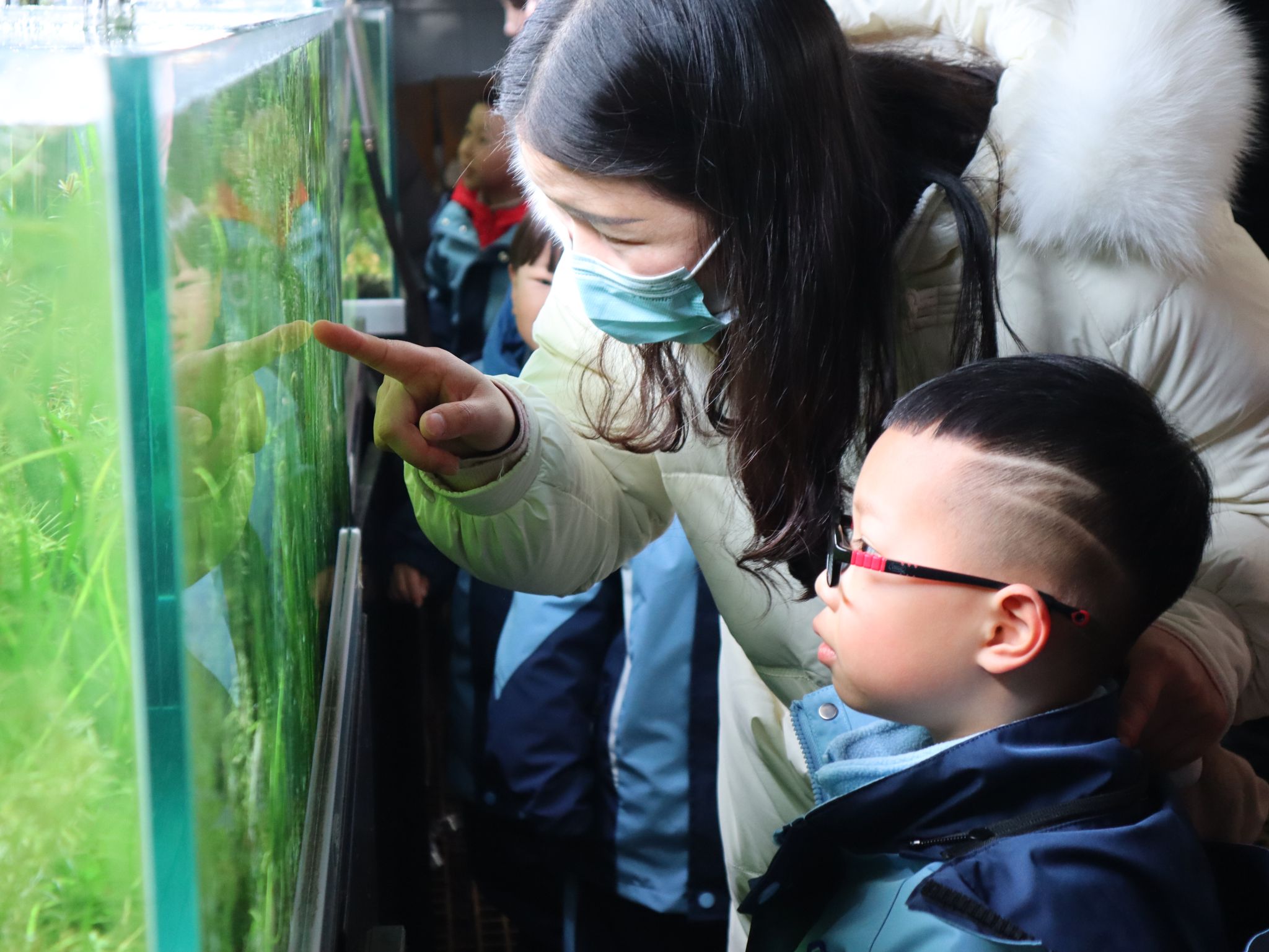 随后,大家来到江苏海洋大学水族造景工作室,被色彩斑斓的鱼类、形态各异的水草和精美的造景深深吸引。孩子们通过观察,了解了水循环、食物链等自然规律,培养了尊重生命的爱心和责任感,同时也初步认识了自然界的运作方式。